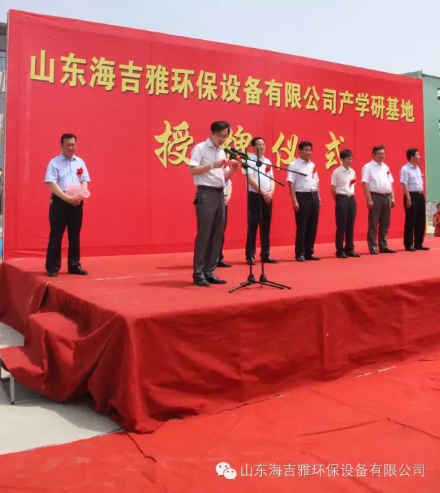 2015年6月6日,在山東海吉雅環(huán)保設(shè)備有限公司隆重舉行與中國石油大學(xué)(華東)的“產(chǎn)學(xué)研合作基地”授牌儀式,出席儀式的有:棗莊市市委領(lǐng)導(dǎo),滕州市市委領(lǐng)導(dǎo),中國石油大學(xué)院長、教授與公司相關(guān)領(lǐng)導(dǎo)及員工。