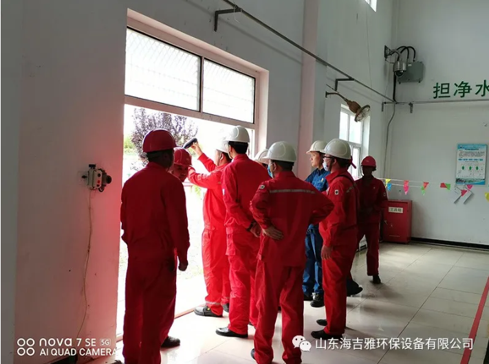 在作業(yè)區(qū)袁經理進行陪同下,考察組對公司一體化水處理設備進行詳細了解,并仔細將來水和出水進行對比,細致詢問公司產品和工藝流程。