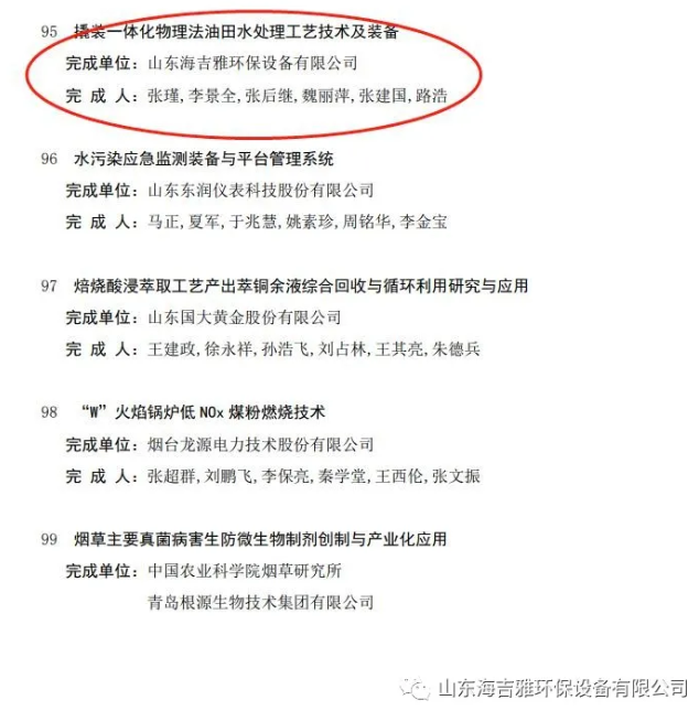 喜提山東省科技進步獎-“撬裝一體化物理法油田水處理工藝技術(shù)及裝備”榮獲省科技進步獎