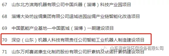 海吉雅環(huán)保與上海迪貝機(jī)器人科技有限公司共同投資深空(山東)機(jī)器人科技有限責(zé)任公司的智能工業(yè)機(jī)器人制造項(xiàng)目,同時(shí)列入省重大項(xiàng)目名單。